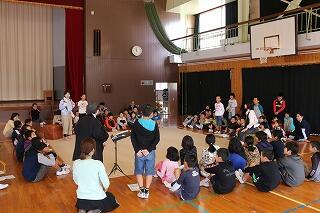 また全員で「わあわあ・・・」「がやがや・・・」と声を出す場面もあり全校児童が楽しんで劇を鑑賞することができました。