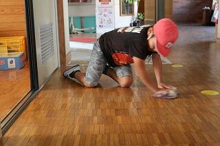 水は冷たいですが、雑巾はしっかりと絞って掃除をしています。