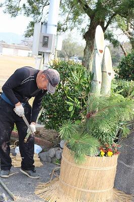 27日朝、PTAによる門松づくりを行いました。