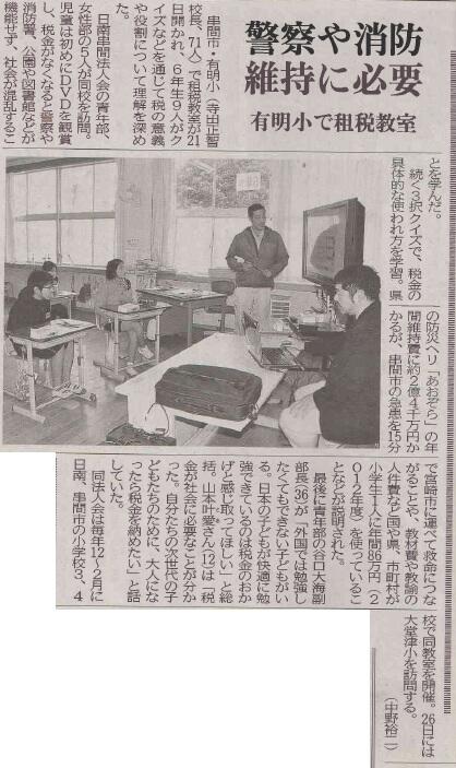 宮日新聞に掲載されました(1月24日付)~租税教室