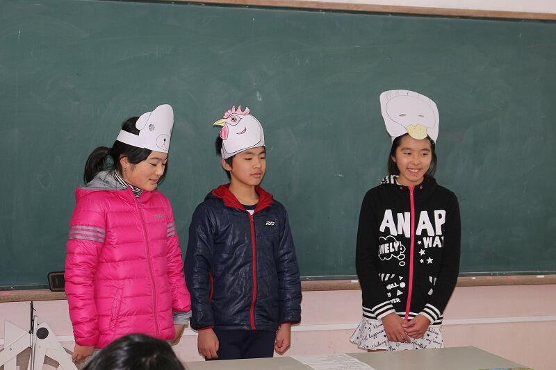 めんどり、ねこ、あひるなどになって子どもたちが見事な演技を披露しました。