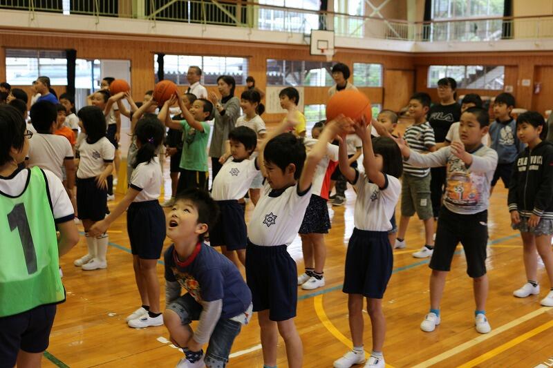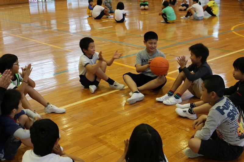 朝の活動時間に「体力向上の時間」を設定しています。月に1回、1年生から6年生までの児童みんなで班を作り、楽しく体力向上を行っていきます。今回が第1回目。自己紹介しながらボール回し。そのあと班対抗のボール回しリレー。みんな笑顔溢れる時間となりました。