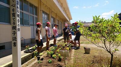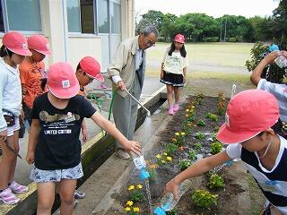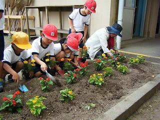 地域の方といっしょに、花壇に花の苗を植えました。