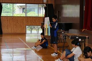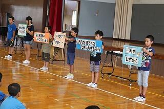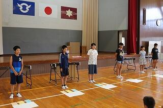 児童集会での発表のトップバッターとして