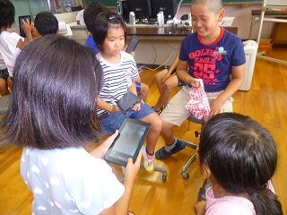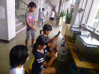 3年生は、金谷小の3,4年生と図工の学習をしました。まず、自己紹介をしあって、打ち解けた後、金谷小の3,4年生が学校の中を案内し、お気に入りの場所を見つけ、写真を撮っていきました。有明小の3年生は、いつもと違う学校の様子に、わくわくしながらお気に入りの場所を探していました。