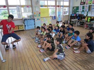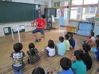 今朝は、1,2年生が大好きな『読み聞かせのお兄さん』による読み聞かせがありました。