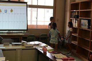 2学期から、外国語活動の環境を整えるためにパソコン室の後方スペースを活用を試みています。