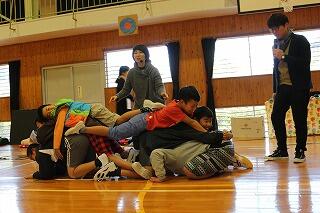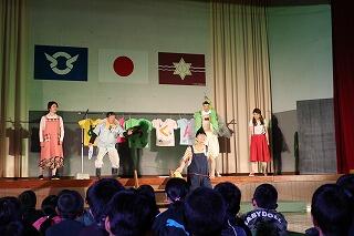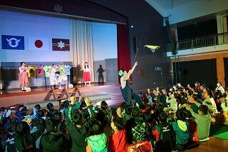 鑑賞教室でユニットアンテナ「あんてな」の皆さんによる演劇、ワークショップがありました。