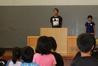 始業式では、2,4,6年生の代表児童が2学期の目標を発表しました。「本を100冊読みたい」「家の手伝いをがんばりたい」「運動会では、団長としてみんなをまとめていきたい」など、自分のことをしっかりと見つめた目標を立てることができました。