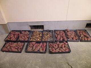まず、黒いシートを外しました。シートを外すと、つるがからまったサツマイモが出てきました。次に、スコップでていねいに掘っていきました。すると、大きな芋やひょろ長い芋、おかしな形の芋など、たくさん出てきました。芋だけでなく、幼虫やトカゲも出てきて大騒ぎになりました。 最後は、芋のつるや葉をきれいにとりのぞき、畑をきれいにしました。そして、サツマイモとジャガイモの土を手で落とし、日陰に干しました。しばらく寝かしておくと、芋はおいしくなるそうです。