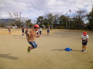 1月は、なわとび旬間です。業間の時間に全校一斉なわとびをします。縦割り班で、6年生の班長が中心になって、いろんな技を練習します。高学年では、二重跳びを練習している子が多いです。中には、あや二重跳び(はやぶさ)、交差二重跳び(つばめ)の技もみられます。それを見ている低学年も一緒になって二重跳びの練習をしています。2年生で20回以上二重跳びができる子もいます。他にも、あや跳びや交差跳び、かけあしあや跳びや片足交差跳びなど、自分で技を作って練習している児童もいます。10分間の短い時間ですが、終わるころにはぽっかぽか、着ていた上着も忘れるくらいです。