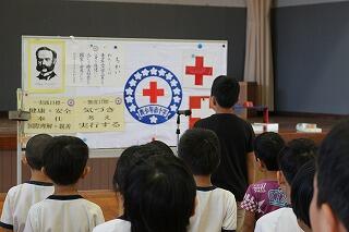 今日はJRC登録式が行われました。JRCとは、「青少年赤十字」のことです。有明小の子どもたちは全員、「気づき」「考え」「行動する」人になる事を、今日誓いました。