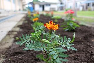 美しい花を届けていただいたので、早速清掃時間に花の苗植えをしました。マリーゴールド、ニチニチソウ、マツバボタン、サルビア、コリウス、メランポリウムなど色とりどりの花々です。