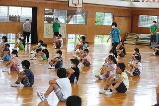 今日7月15日(水)の児童集会は、2年生と体育委員会による発表でした。