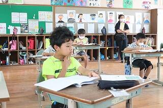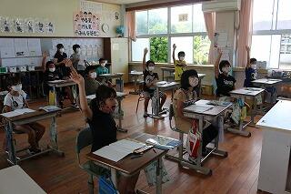 7月もこれまで以上に新しい生活様式を守って元気に過ごすことを確かめて、全校朝会が終わりました。