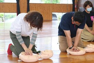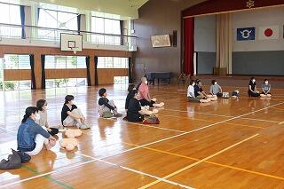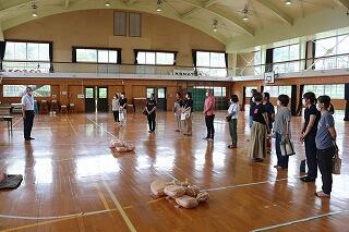 参観日と同日の7月2日(木)に、学校保健委員会を開催しました。消防士さんを招き、心肺蘇生法を学ぶ取組です。