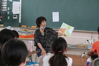 今日7月10日(金)は、急きょ海浜活動が延期となったので、予定を入れ替えて読み聞かせボランティアの方々に読み聞かせをしていただきました。