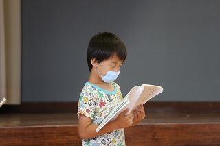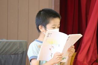 2年生は全員で、国語の教科書教材の音読発表を行いました。みんな真剣な表情で一生懸命読んでいましたよ。