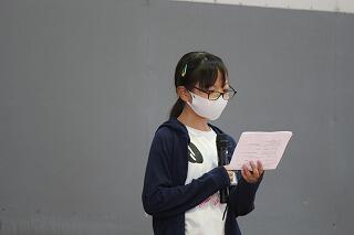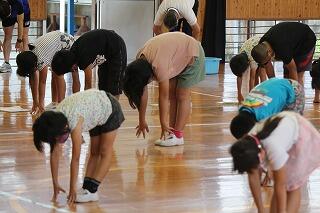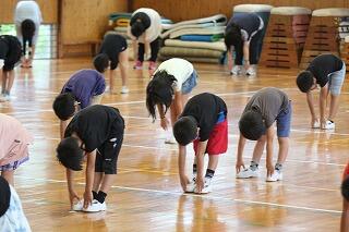 次は、体育委員会による発表です。体育委員会は、有明小学校の体力における課題である柔軟性をつけるためのストレッチの紹介でした。手本を示しながら、はきはきと発表してくれました。