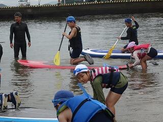 7月17日(金)は、先週雨天のため延期した「ありあけん子海浜活動」(SUP体験)を実施しました。