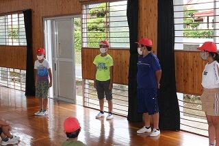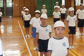 主に開会式や閉会式の練習を行い、子どもたちは前回習ったとおりに「注目」や「礼」ができるように、さらに練習に励みました。