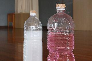団の決め方は、ペットボトルの水を振ると、それぞれ色が変わって何団か分かるというものです。