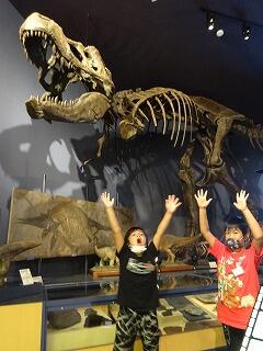 (博物館にも行き、見学しました。大きなティラノサウルスの模型にびっくり。)