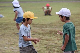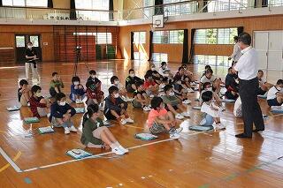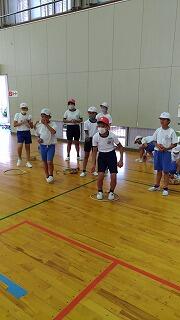 コロナ禍においてもできる体力向上の取り組みとして紹介されたじゃんけん陣取り。これからもいろいろな場面で楽しみながらやってほしいと思いました。