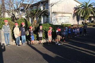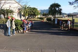 地区毎に当番を決めて、朝、校門に立ち、あいさつをします。