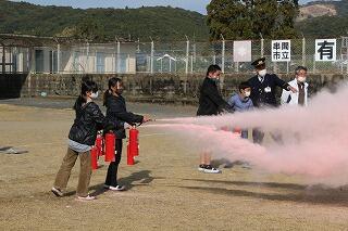 12月18日(金)、本日は3時間目に消防署の予防係の方と旭消防設備の方をお招きして、火災を想定した避難訓練を行いました。