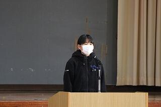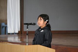 6年生は、英語やあいさつを頑張ると、中学校進学を見据えての発表でした。