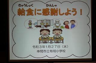 本日1月27日(水)の朝に行われた全校集会は、給食感謝集会でした。