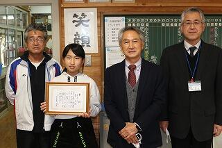 1月16日(土)に予定されていた「青少年の声を聞く会」が中止になり、表彰も延期されていたのですが、1月27日(水)に本校分の表彰が校長室で行われました。