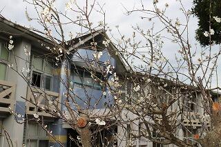 職員室から見える学校の梅の木にも花が咲き始めました。