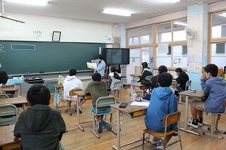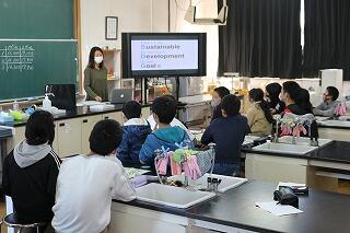 2月8日(月)の⑤⑥校時に5年生が、市役所から上山さんと武田さんを講師に迎え、SDG'Sの授業を行いました。