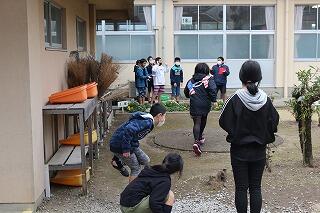 体育の前で外にいた1年生、そして機敏な5年生が、早速中庭で雪を体験しました。