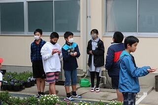 環境・美化委員会は、クイズもまじえながら、実物や写真も活用し、正しい花の世話の仕方などについての発表をしました。