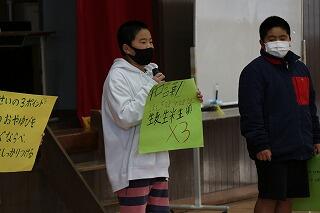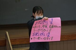 2月17日(水)の朝の全校集会は、放送委員会と環境美化委員会の担当でした。