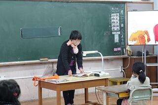 (2年生、「かさこじぞう」の音読劇。すらすら読むことができました。)