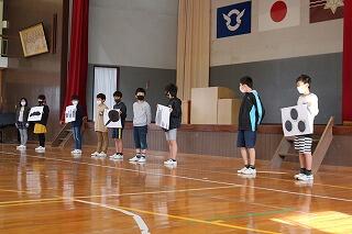 計画された内容の1番目は、体育館でのお別れ集会でした。各学年工夫を凝らした内容でした。