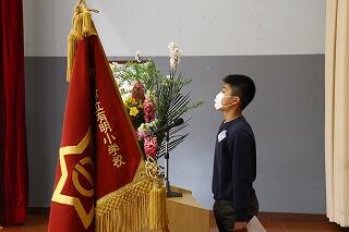 続いて図書・掲示委員から感謝のメッセージを、環境美化委員から感謝の花をお送りしました。