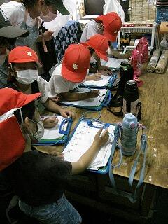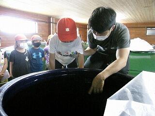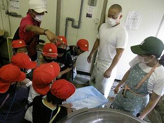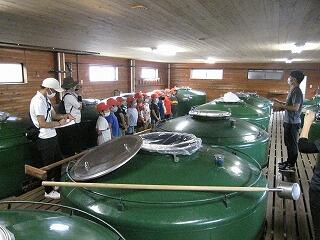 6月7日(月)に2年生は生活科「町たんけんにいこう」の学習で松露酒造を見学しました。焼酎の作り方を現場を見ながら説明してもらい、質問に対しても一つずつ丁寧に答えていただきました。写真は、見学の様子です。