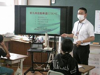 現在、6年生の総合的な学習の時間(くしま学)は、「串間の未来を考えよう」という単元を学習しています。その学習の中で、建設が進められている高速道路について、意味や意義を考え、串間の良さを生かす方法を検討しています。6月18日(金)は、市役所の方に来ていただき、串間市の高速道路の現状やこの高速道路が串間にどのような影響を与えるのかについて、話をしていただきました。この話をもとにさらに串間の未来を創造していきます。下の写真は、市役所の方の説明の様子とその時に使ったワークシートです。