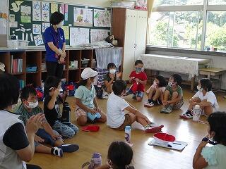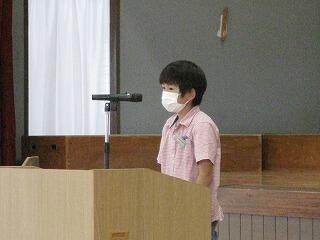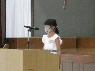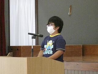 1学期努力したことやこれからの目標などを、1・3・5年生の代表3名が発表しました。また、明日から夏休みに入るので、過ごし方についての話もありました。