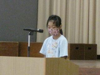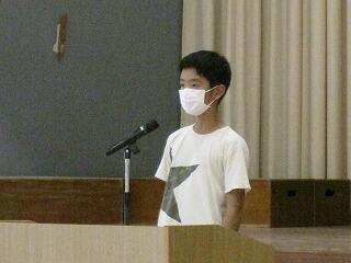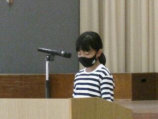 式の中では、2・4・6年の代表児童が作文発表を行いました。2学期の目標をはきはきと発表してくれました。また校長先生からは、「えしゃく」についてのお話がありました。