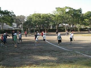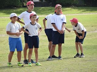 本日10月27日(水)の朝の活動時間は、全校児童で体力向上の取組を行いました。今回は、「陣取り」でした。学年縦割りの班で4チームに分かれて、対戦しました。各チームで攻め・守りの作戦を立て、協力して楽しく戦っていました。なかなか、大人数で遊ぶ機会が少なくなっているので、よい経験であり、楽しく体力向上ができているので、今後も続けたいと感じました。写真は、陣取りの様子とそれを指揮する体育委員会の指示する様子です。