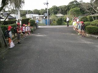 この活動は、担当の地区の児童・職員が早めに登校し、校門で元気よく挨拶を行うものです。18日は木代地区、19日は有明2区、20日は今町地区、22日は塩町・高松地区、25日は西浜・校区外地区と続いていきます。写真は、木代地区のあいさつ運動の様子です。