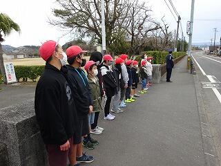 今週1週間(1月31日~2月4日)は、あいさつ運動週間でした。月曜日の木代地区から始まり、本日金曜日の西浜・校区外地区まで、日ごとに担当地区児童と教師が正門の前に立ち、登校する児童や車や自転車で通る方々へ大きな声であいさつを行いました。車で通りすぎる方からも会釈をしていただき、朝から気持ちの良い1週間でした。この取組を生かして、いつでも、どこでも、誰にでも、元気のよいあいさつができるようにがんばります。