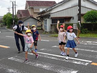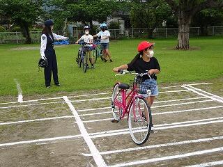5月9日(月)の午前中に串間市警察署と交通安全協会の方にご協力いただき、交通安全教室を実施しました。2校時に1・2年生、3校時に3・4年生、4校時に5・6年生と学年部ごとに横断歩道の渡り方や自転車の乗り方を中心に指導していただきました。横断歩道を渡る際の待つ位置や自動車の左折の際の内輪差等、色々と実践しながら学ぶことができました。ご指導いただいた皆様、ありがとうございました。