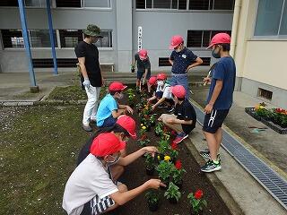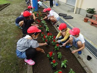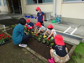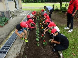 5月11日(水)の3校時にグリーンタイムとして、花壇の花の苗植えを行いました。地域の方も来られて、一緒に花の苗植えをする予定でしたが、朝から雨が降っていたため、児童と職員のみで実施しました。昨日まで、寂しい花壇でしたが、花が植えられることで、明るく華やかになりました。11月にもグリーンタイムがあるので、次回は、地域の方と楽しく苗植えができればいいなと思っています。花の苗を提供いただきました山下園芸様、ありがとうございました。